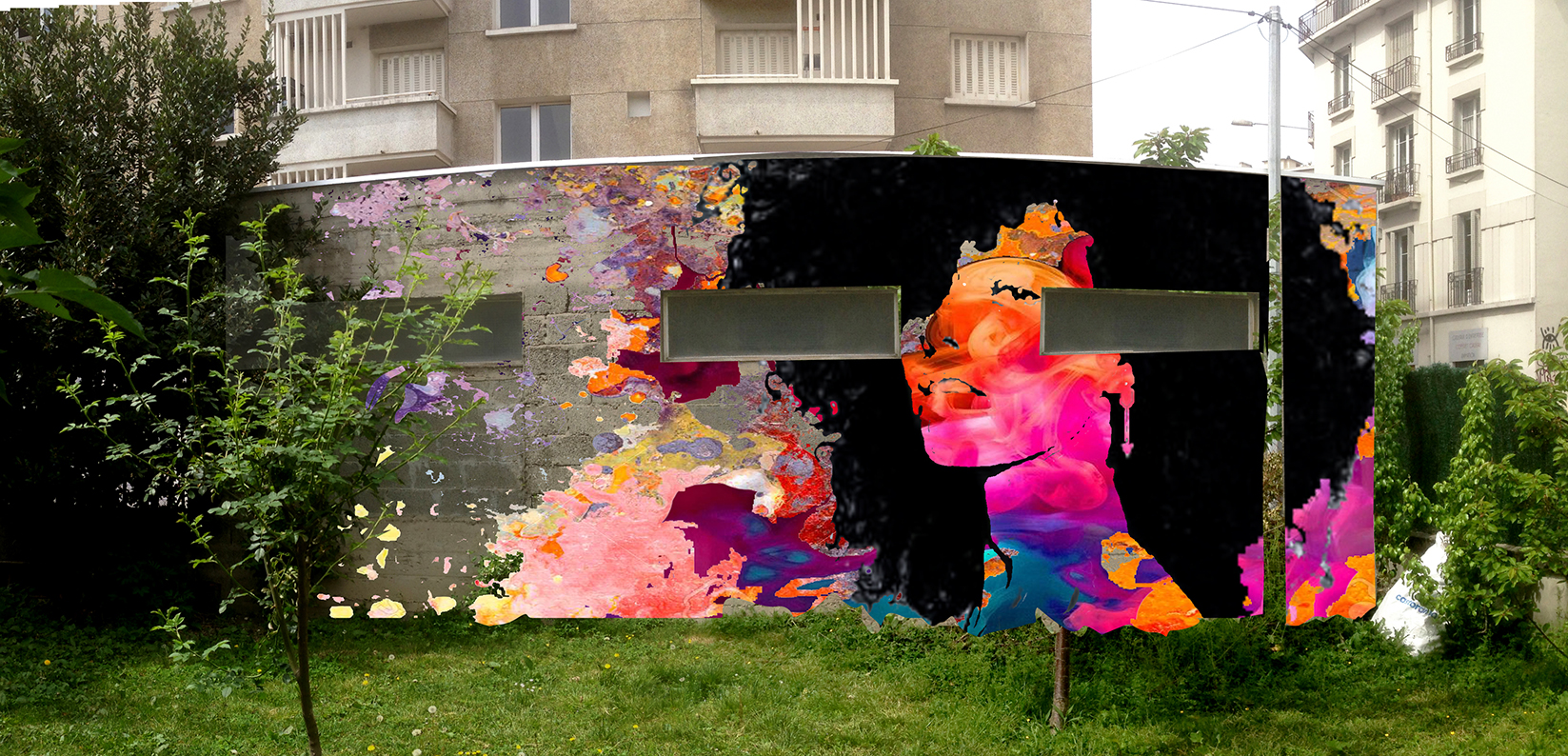 Série de proposition de fresque dans le but de peindre un mur mitoyen entre deux copropriétés .